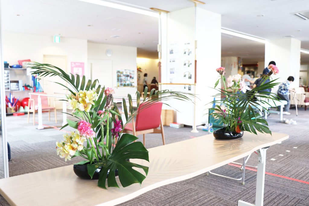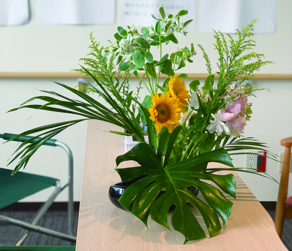 今日のメニューは生花。参加の皆さんでひとつの作品を作り上げます。