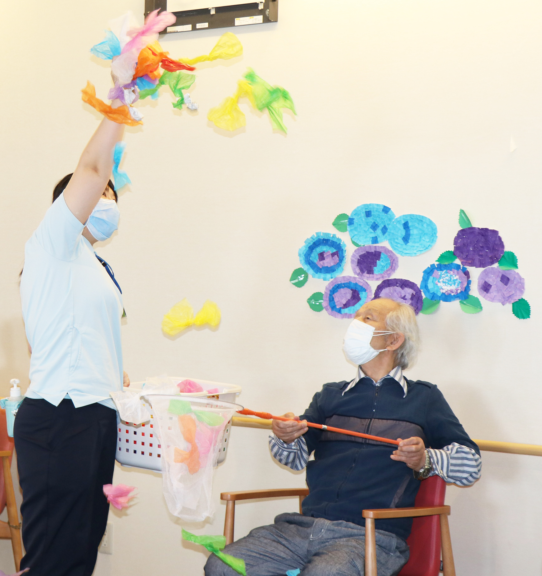 集団レクリエーションで行った「バタフライキャッチ大会」の様子をご紹介します