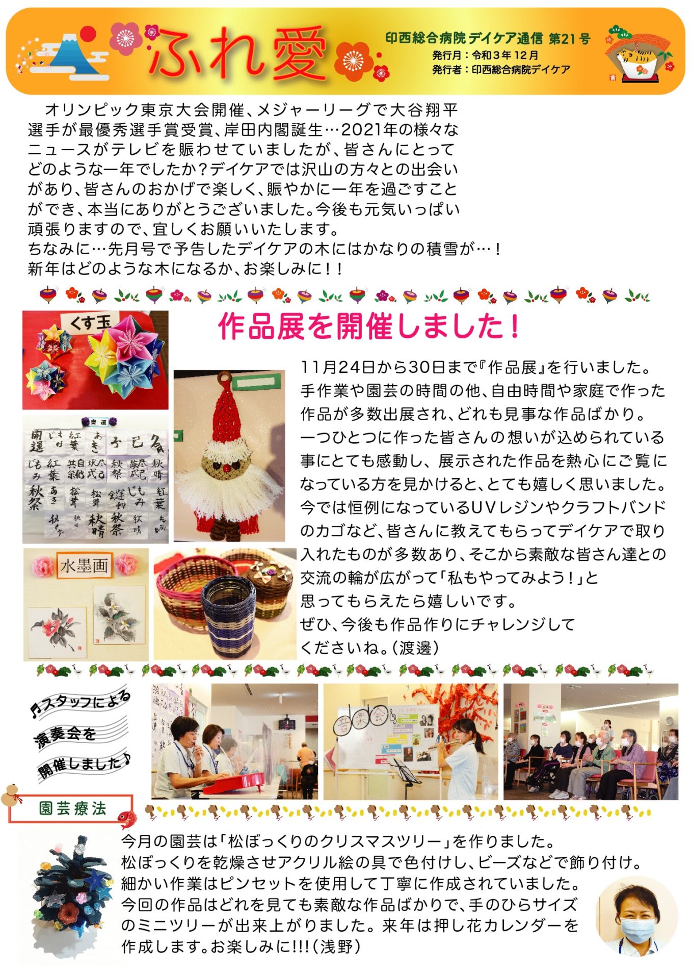 今月もプリントとしてお渡ししているデイケア通信「ふれ愛」をご紹介します。 一部削除して公開している部分がございます。ご了承ください。 バックナンバー📚 2021年11月号 2021年10月号 2021年9月号 2021年8月号 2021年7月号 2021年6月号 2021年5月号
