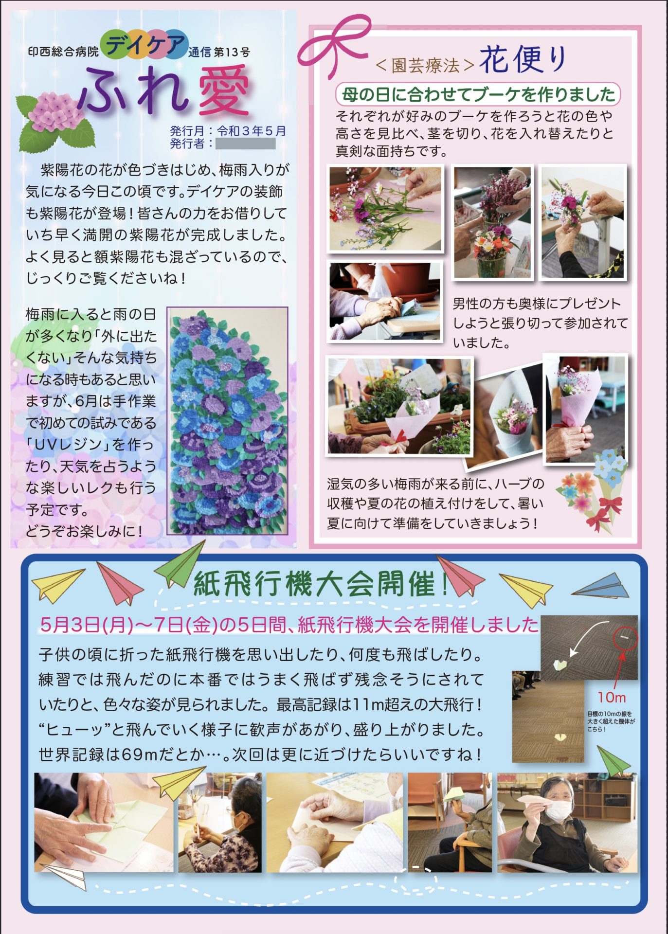 当院デイケアサービスのご利用者さんに毎月プリントしてお配りしているデイケア通信。 イベントやレクリエーションの様子を利用者さんのご家族や、利用者さんご本人が他の曜日の様子も分かるようにまとめてご紹介しています。 今月もその一部を公開! 少しだけですが、デイケアの様子がお伝えできればと思います✨