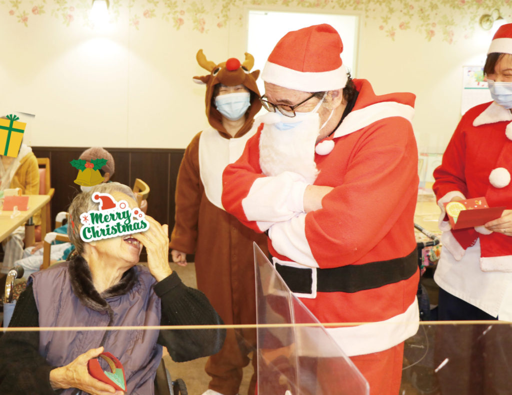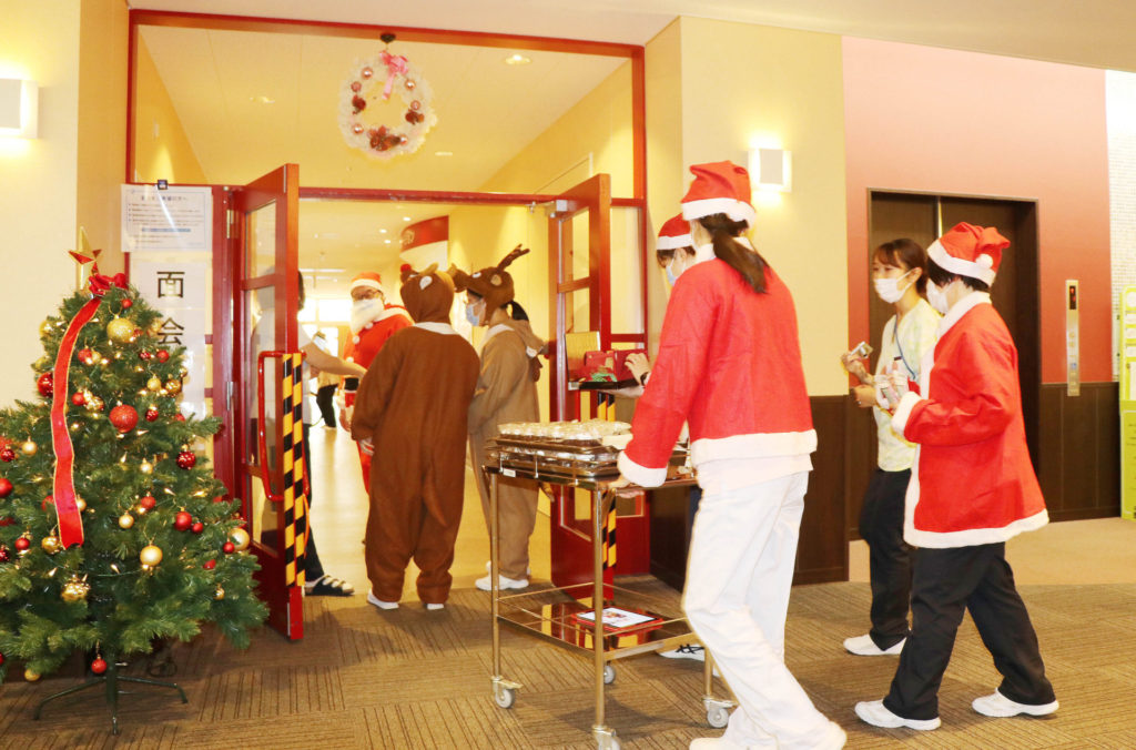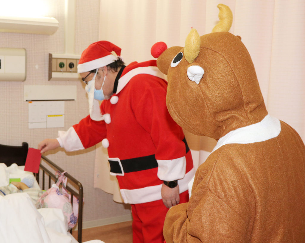 サプライズで各病室やダイニングにサンタクロースとトナカイが登場!