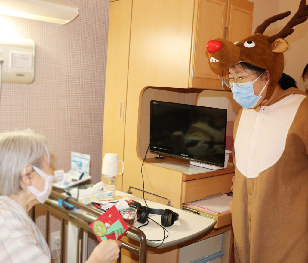 当院の3階病棟に入院中の皆さんの元にサンタクロースとトナカイがやってきました!