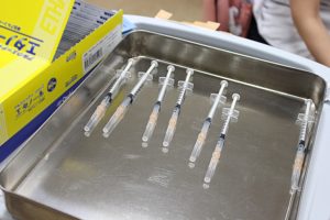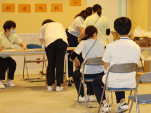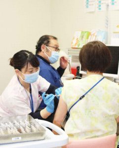 医療従事者向けの新型コロナウイルスワクチン接種が 当院でも始まりました 薬剤部のスタッフが事前にワクチンの準備を進め、医局・看護部と連携して接種を行いました。 今回は30分毎に人数を限定して会場に入るよう予約にし、受付から接種後の待機場所まで 密にならないよう動線を確保。 初日は目立ったトラブルや重い体調不良を訴える職員もおらず、スムーズに終了しました。 地域の皆さまに安心して当院を利用していただけますよう、当院では引続き感染対策を 徹底して参ります。