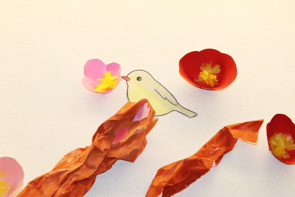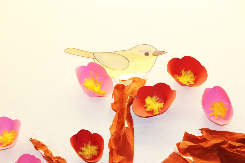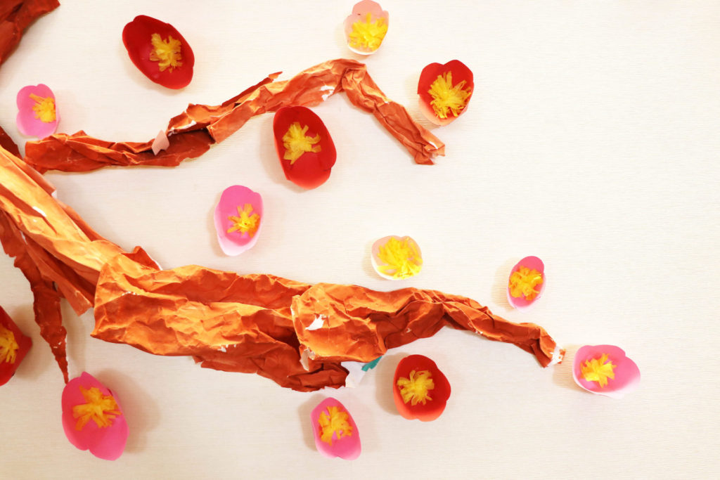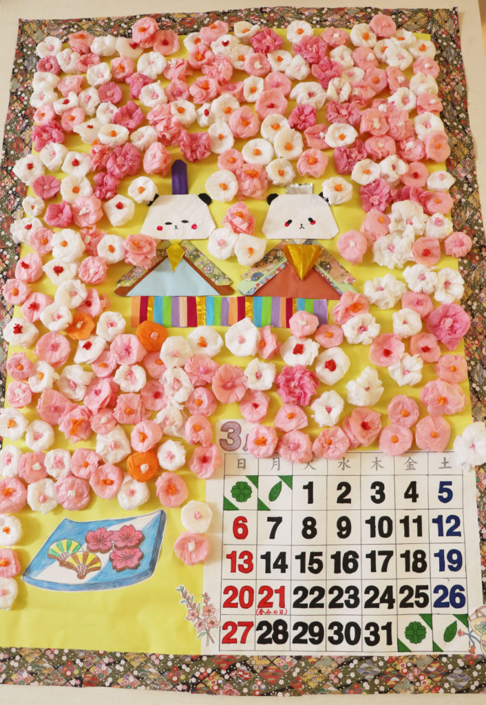 利用者さん達がひとつずつお花紙で作った桃の花がとても綺麗でキュートな仕上がりですね‼️