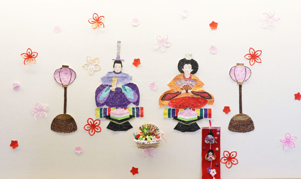 さて、デイケアの壁面はひと足先に春が訪れているようです。