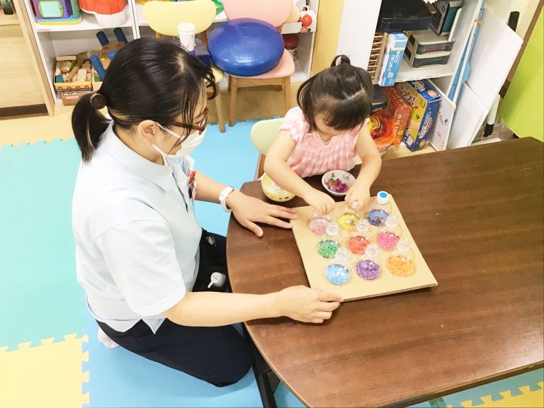 食事の時にスプーンやフォークがうまく使えない、着替えがひとりでできないなどのお困りごとに対して、生活動作の支援をします。また、幼稚園・保育園・学校などの集団生活に馴染めないといったお悩みに関しても、お子さんに合わせたサポートやアドバイスをおこなっています。