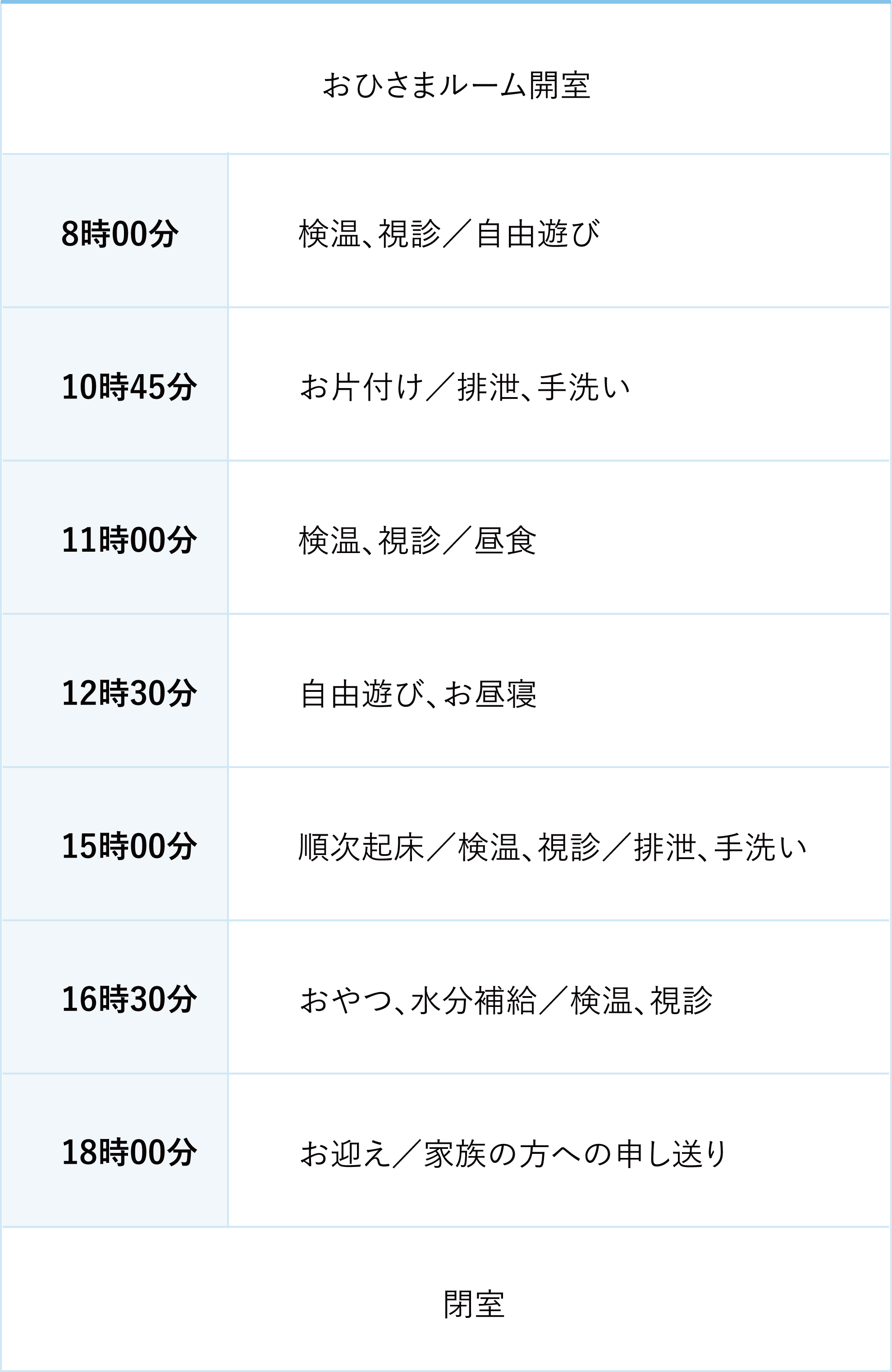 当院のおひさまルームで小児科と連絡を取り合いながらお子さまを安全にお預かりいたします。