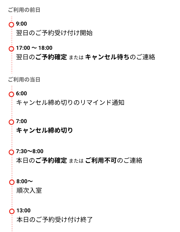 ・ご利用の予定がなくなったらご利用をお待ちの方もいらっしゃいますので、あずかるこちゃんから当日7時までに必ずキャンセルをお願いします。
