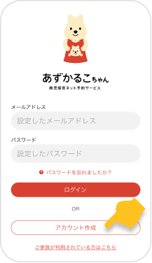 病児保育のネット予約システム「あずかるこちゃん」でアカウントを作成してください。